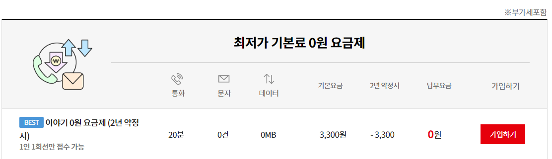 0원 요금제는 에넥스텔레콤만 있지 않습니다.