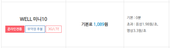 위너스텔이라고 KT 계열 알뜰폰 회사입니다. 정식 명칭은 웰미니10 요금제 입니다.