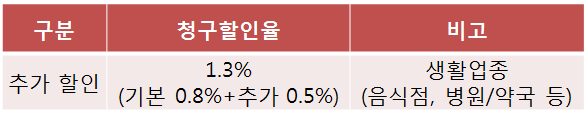< 무실적 0.8% 청구할인 or 생활업종 1.3% 청구 할인 >