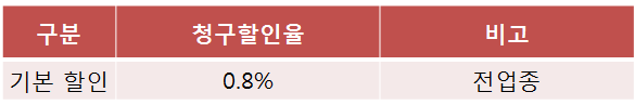 1) 전 업종 : 할인한도 제한 없이 0.8% 청구할인