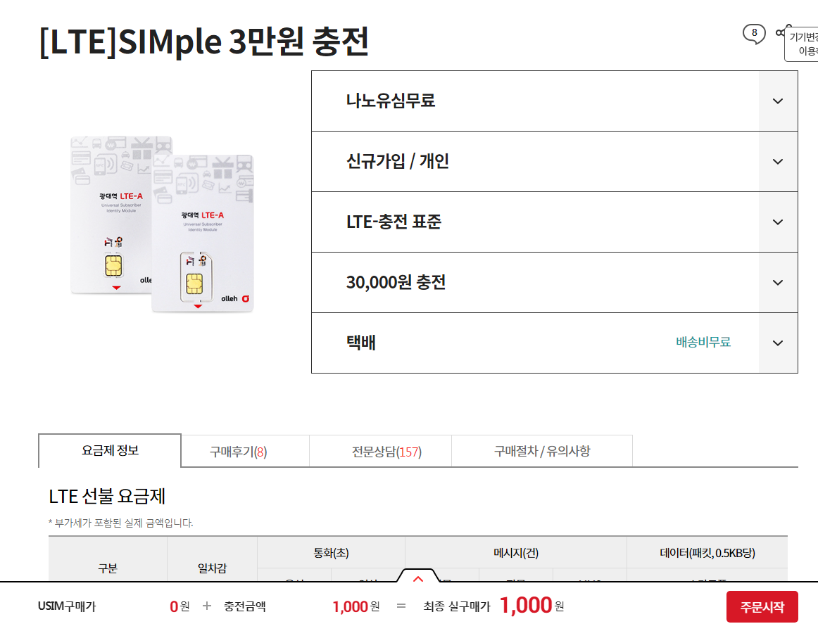 추가적인 팁을 소개해드리자면, KT 공유심 가격이 대략 7~8천원 할겁니다.