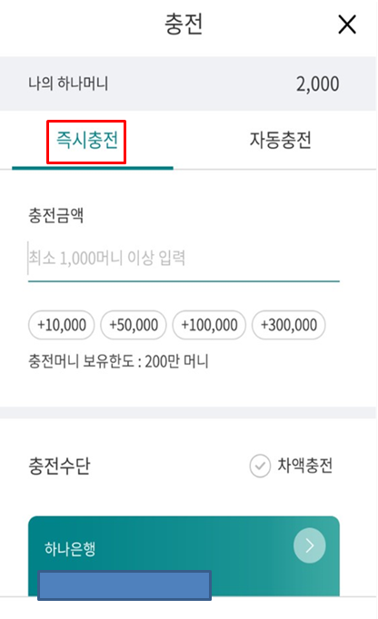 이후, 좌측에 즉시 충전탭을 터치합니다. 10만원을 입력하고, 충전합시다.