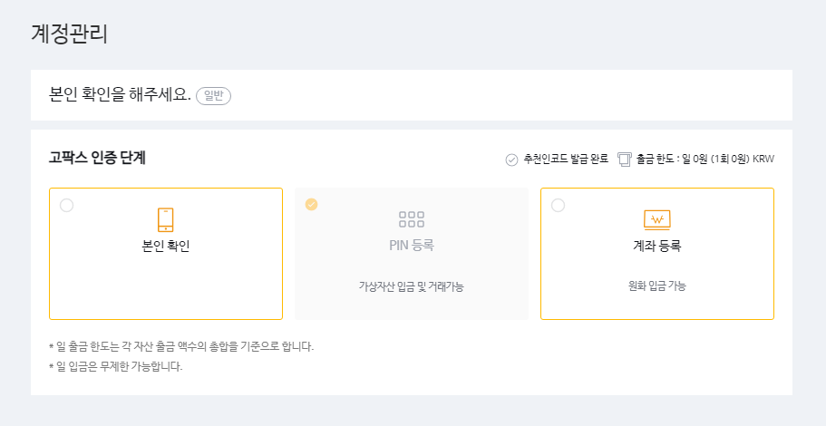 이메일 인증 메일을 클릭하고, 고팍스 계정에 로그인을 하세요. 로그인 하면 휴대폰 본인 인증, 계좌 인증 등 인증절차가 필요하나, 오래 걸리진 않습니다.