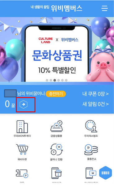 1. 위비꿀머니 충전 / 선물하기