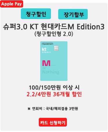 3. kt-현대카드M Edition3(청구할인형2.0) / 36개월 150만 이상 4만 할인
